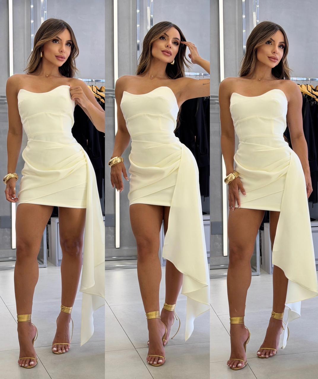 O Vestido Monalisa Off White entrega uma elegância limpa, moderna e irresistivelmente chique. Feito em alfaiataria e totalmente forrado, ele oferece conforto e firmeza sem perder leveza. O decote tomara que caia destaca o colo com delicadeza, e o lastex nas costas garante um ajuste impecável, modelando o corpo sem apertar.